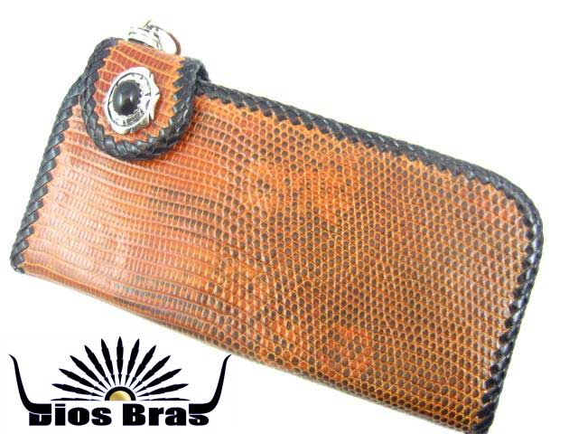 ブラウンリザード(トカゲ革)使用のオニキスコンチョがインパクト抜群!!バイカーズウォレットです。